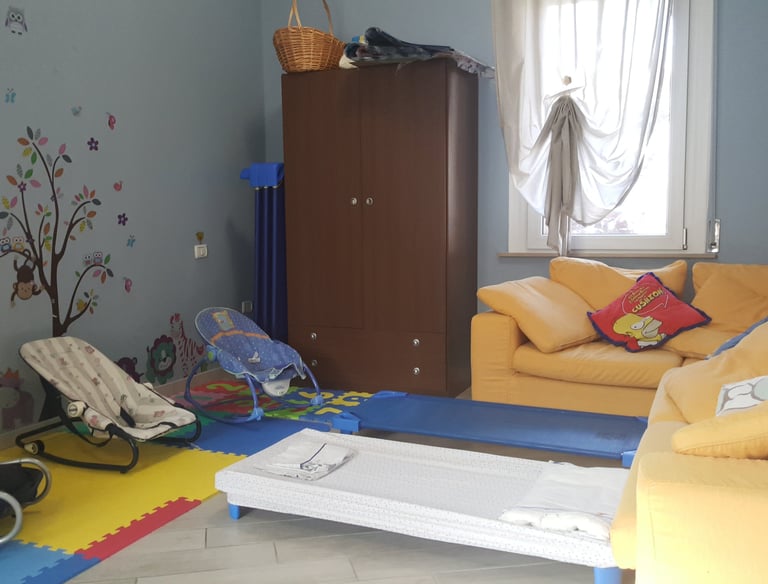 Nido Famiglia Mondo Azzurro accoglie bambini da 3 mesi a 3 anni in un ambiente familiare, sicuro e sereno, dove cura, gioco e affetto accompagnano ogni giorno la loro crescita