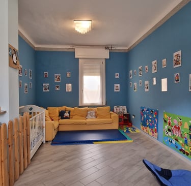 Nido Famiglia Mondo Azzurro accoglie bambini da 3 mesi a 3 anni in un ambiente familiare, sicuro e sereno, dove cura, gioco e affetto accompagnano ogni giorno la loro crescita