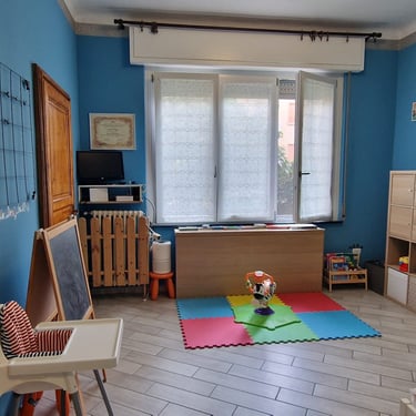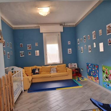 Scopri gli spazi del Nido Famiglia Mondo Azzurro: ambienti accoglienti, colorati e a misura di bambino, pensati per offrire serenità, gioco e crescita ogni giorno.